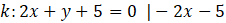 W tym zadaniu trzeba obliczyć w jakiej odległości punkt P o współrzędnych (0, 2) znajduje się od prostej o równaniu 2x + y + 5 = 0