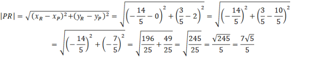 Zauważ, że odległość punktu P od prostej k, to po prostu długość odcinka PR. Długość tę obliczysz z odpowiedniego wzoru: