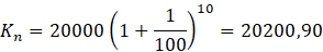 W tym zadaniu musisz obliczyć, jaki będzie stan konta po 10 latach, jeśli oprocentowanie wynosi 1% i wpłacono 20 000 zł na 10 lat.