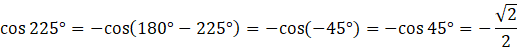 Oblicz cosinus kąta 225°: