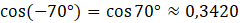Oblicz cosinus kąta -70°: