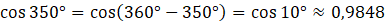 Oblicz cosinus kąta 350°: