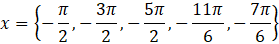 Wykorzystując obliczone rozwiązania x, określ argumenty x, z przedziału (-3π;0), które spełniają równanie.