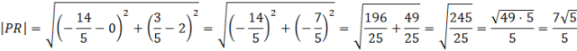 Dystans pomiędzy punktem P, a podaną prostą wynosi