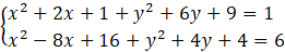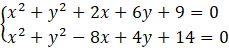Wyznacz współrzędne punktów wspólnych okręgów: