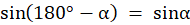 Wiedząc, że α jest rozwarty i korzystając ze wzoru sin(180°-α) wyznaczasz miarę kąta α.