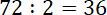 50% liczby 72 to