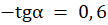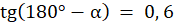 Wiedząc, że α jest rozwarty i korzystając ze wzoru na tg(180°-α) wyznaczasz miarę kąta α.