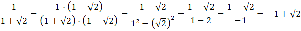 Dowolna liczba przemnożona przez 1 daje w wyniku tę liczbę, więc aby usunąć niewymierność z mianownika liczby