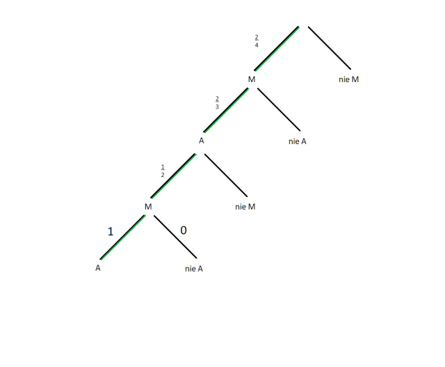 Ponieważ doświadczenie losowe jest wieloetapowe, w tym zadaniu musisz narysować drzewko. Każdy poziom drzewka będzie odpowiadał kolejnemu wyborowi klocka. Ponieważ wystarczy jedno wybranie klocka innego niż powinien być, by warunek zdarzenia nie został spełniony, to nie musisz rysować dalszych gałęzi w sytuacji, gdy nie wylosuje się odpowiedniego klocka. Prawdopodobieństwo wylosowania klocka liczysz za każdym razem z klasycznej definicji prawdopodobieństwa dzieląc ilość klocków które chcesz wylosować przez wszystkie jakie są. Pamiętaj, że z każdym losowaniem wyjmujesz jednego klocka, więc ilość klocków które wybierasz jak i wszystkich się zmniejsza. Nie musisz liczyć prawdopodobieństwa tych gałęzi których nie będziesz uwzględniał. Gdy już narysujesz drzewo zaznacz te zdarzenia, których prawdopodobieństwo będziesz liczył oraz wszystkie gałęzie po drodze. Następnie przemnóż przez siebie prawdopodobieństwa na poszczególnych gałęziach.