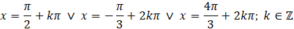 W przedziale o długości 2π są dwa rozwiązania spełniające równanie. Są nimi: