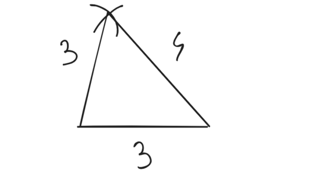 Aby skonstruować trójkąt potrzebujesz linijki i cyrkla. Rysujesz za pomocą linijki pierwszy, dowolny bok o podanej długości. Następnie cyrklem odmierzasz długość drugiego boku, wbijasz w koniec pierwszego odcinka i cyrklem rysujesz mały łuk o podanej długości. Potem odmierzasz cyrklem długość trzeciego boku, wbijasz cyrkiel w drugi koniec pierwszego odcinka i również wyznaczasz łuk tak, aby przeciął się z tym pierwszym. Punkt ich przecięcia to Twój trzeci wierzchołek trójkąt i łączysz go z pozostałymi.