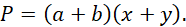 Prostokąty czerwone mają wspólny, krótszy bok o długości b. Prostokąt żółty ma pole a·x, a prostokąt zielony a·y. Cały prostokąt ma pole