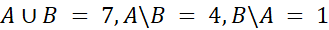 Możemy zauważyć, że jeżeli przecięcie zbiorów A i B ma 2 elementy, to 2 elementy się powtarzają, czyli suma tych zbiorów to dodanie 6 elementów do 3 elementów oraz odjęcie tych, które się powtarzają tych zbiorów. Zatem łatwo już możemy określić różnice zbiorów A i B (od zbioru A odejmujemy elementy wspólne) oraz B i A (od zbioru B odejmujemy elementy wspólne obu zbiorów).