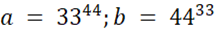 Większa jest liczba a, ponieważ ma większą potęgę, patrząc na fakt, że liczby potęgowane mają takie same podstawy. Iloczyny mają różne pierwsze czynniki, ale nadal większy czynnik drugiego z nich jest mniejszy od większego czynnika pierwszego iloczynu: