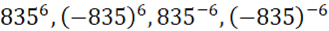 (-835)-6 - tak, ponieważ potęga jest parzysta, ale liczba będzie mniejsza od 1, ponieważ potęga jest ze znakiem ujemnym.