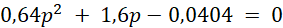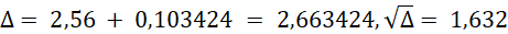 Otrzymujemy równanie kwadratowe, które rozwiązujemy przy pomocy delty: