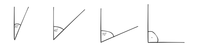 W tym zadaniu musisz narysować kąty: 30°, 45°, 70°, 90°, 120°, 145°, 210°.