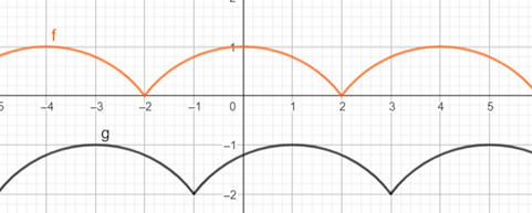 W tym zadaniu należy określić, która z poniższych równości opisuje zależność między funkcjami f i g na rysunku?