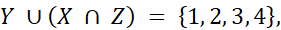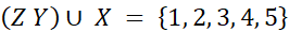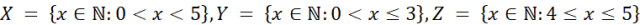 X = {1, 2, 3, 4}, Y = {1, 2, 3}, Z = {4, 5}.