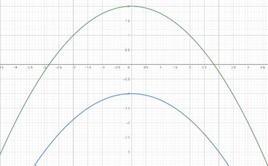 Musimy najpierw znaleźć wzory tych funkcji. Wybieramy dwa punkty lezące na danej paraboli funkcji, następnie podstawiamy wartości tych punktów, aby wyznaczyć wzór funkcji kwadratowej.