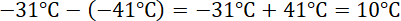 temperaturę –41 stopni od zera dzieli 41 jednostek, a temperaturę –31 stopni – 31 jednostek, różnica wynosi 10 jednostek, czyli 10 stopni Celsjusza.
