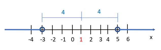 |x–1| > 4 ⇔ x Î (–∞,–3) ∪ (5, + ∞)