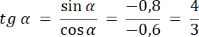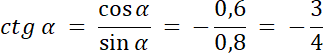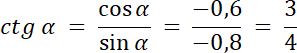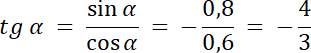 sin2α + cos2α = 1 dla cos α = –0,6 :