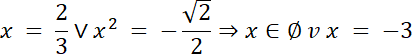 3x = 2 ∨ 2x2 = –√2 ∨ x = –3