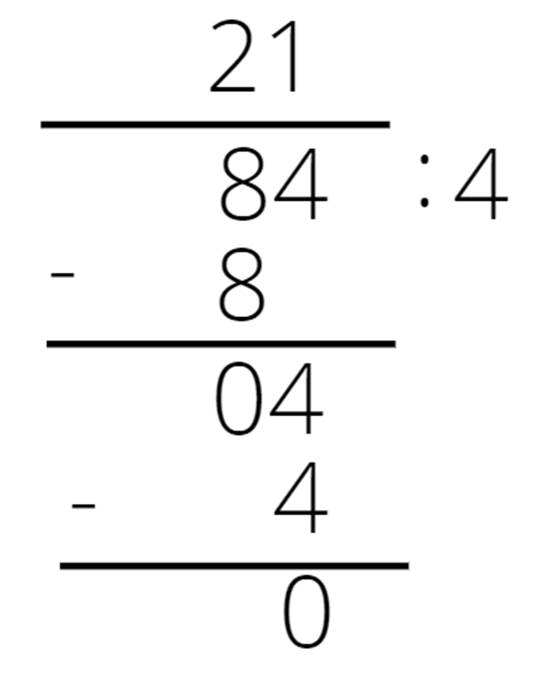 Sprawdź, ile razy mieści się pierwsza cyfra w dzielniku. Wynik zapisz nad kreską nad naszą cyfrą. Pomnóż zapisaną liczbę przez dzielnik i zapisz wynik pod pierwszą cyfrą. Zapisz pod tą liczbą kreskę i odejmij powyższe dwie liczby. Do uzyskanego wyniku dopisz kolejną cyfrę dzielnej i znowu sprawdź, ile razy mieści się ta liczba w dzielniku. Wynik zapisz nad kreską nad naszą cyfrą. Pomnóż zapisaną liczbę przez dzielnik i zapisz wynik pod drugą cyfrą. Zapisz pod tą liczbą kreskę i odejmij powyższe dwie liczby.