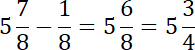 Wykonując odejmowanie, gdy odjemnik jest ułamkiem właściwym, to część całkowitą przepisujemy, a odejmujemy ułamki. Pamiętaj o skróceniu ułamka w wyniku końcowym.