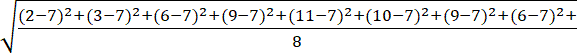 Odchyleniem standardowym liczb x1, x2, …, xn nazywamy liczbę σ określoną za pomocą wzoru: σ =