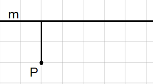 Zaznacz punkt P. Narysuj odcinek, który zaczyna się w punkcie P i ma długość 1 cm. Poprowadź prostą m przez ten odcinek.