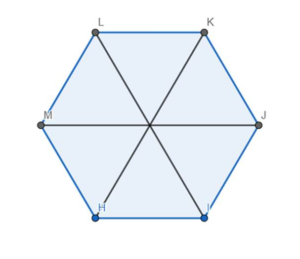 Narysuj sześciokąt foremny, połącz jego wierzchołki ze środkiem trójkąta. Podaj, na ile trójkątów został podzielony sześciokąt i jakie to trójkąty.