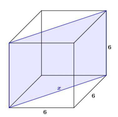 Wyznacz pole powierzchni przekroju sześcianu o długości krawędzi wynoszącej 6, który przedstawia rysunek.