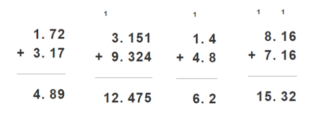 Ułamki dziesiętne odejmij i dodaj pisemnie tak, aby przecinki każdej z tych liczb znajdowały się pod sobą.