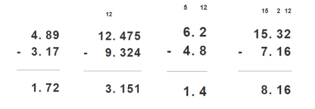 Odejmij pisemnie podane ułamki dziesiętne, a następnie dokonaj sprawdzenia.