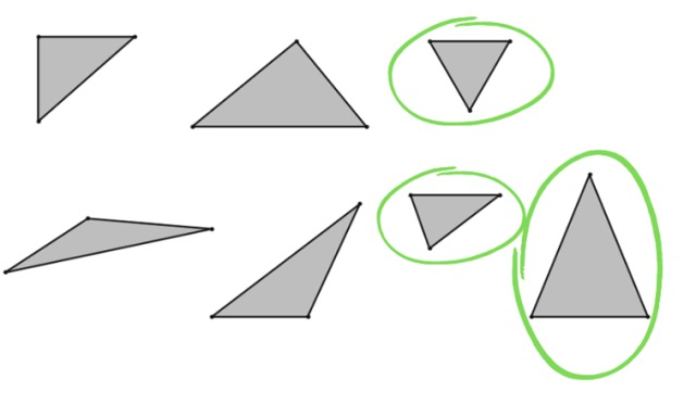 Musisz zamalować na zielono wszystkie trójkąty posiadające same kąty ostre.