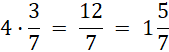 Są cztery paski z zapełnionymi trzema częściami z siedmiu. Mnóż tylko licznik.