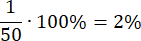 Podziel 1 przez 50, a otrzymany ułamek zamień na procenty: