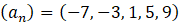 Oblicz różnicę pomiędzy sąsiednimi wyrazami, następnie zauważ, że jest stała i równa 4.