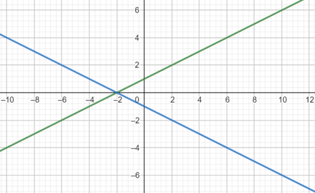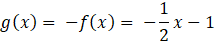 Wykres funkcji y = g(x) (przekształcony przez symetrię względem osi OX wykres funkcji f) (kolor niebieski)