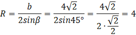 Korzystając z twierdzenia sinusów wyznacz długość boku a, następnie z zależności stosunku długości boku do miary kąta, oblicz długość promienia