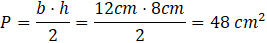 Pole trójkąta jest równe ilorazowi iloczynu podstawy i wysokości przez liczbę 2: