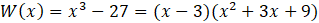 Aby znaleźć wielomian stopnia pierwszego, przez który jest podzielny wielomian W(x) przedstaw wielomian W(x) w postaci iloczynu. W tym celu skorzystaj ze wzoru skróconego mnożenia na różnicę sześcianów.
