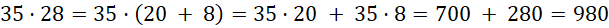 W zadaniu mamy prostokąt, skorzystaj ze wzoru na pole prostokąta i z prawa rozdzielności mnożenia względem dodawania/odejmowania, dodaj wartości na górnym boku i pomnóż z drugim bokiem.