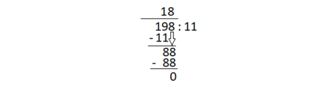 W tym zadaniu musisz uzupełnić poprawnie dzielenie 198 : 11 sposobem pisemnym.