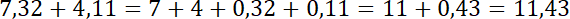 Aby wykonać działania w pamięci, podziel je na działania na częściach całkowitych i częściach dziesiętnych. Pamiętaj, że mnożąc przez wielokrotność 10, przesuwasz przecinek w prawo o tyle miejsc, ile ta wielokrotność ma zer, a dzieląc przez wielokrotność 10, przesuwasz przecinek w lewo o tyle miejsc, ile ta wielokrotność ma zer.