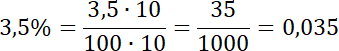 Zamień procenty na ułamki umieszczając liczbę procentów w liczniku, a w mianowniku 100. Jeżeli w liczniku będzie liczba z częścią po przecinku, pomnóż licznik i mianownik przez potęgę 10 tak, aby liczba była całkowita. Następnie zamień ułamek zwykły na ułamek dziesiętny. Aby to zrobić, weź liczbę z licznika i przesuń przecinek w lewo o tyle miejsc, ile zer ma liczba w mianowniku.