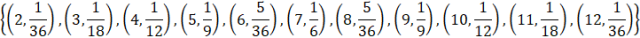 W tym zadaniu musisz wyznaczyć rozkład zmiennej losowej X, w doświadczeniu polegającym na rzucie dwoma sześciennymi kostkami do gry, gdzie X to suma wyrzuconych oczek.